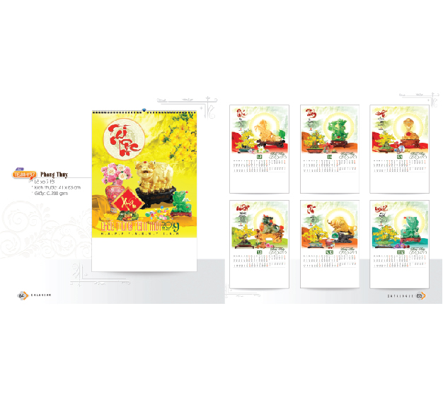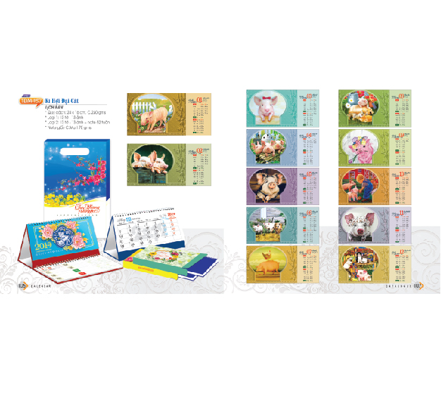 Tại CTY IN NGÀY MỚI Qúy Khách thỏa lòng lựa chọn mẫu lịch, từ chất liệu in trên giấy, in trên gỗ, chạm cát, điểm vàng, in công nghệ metalize, dán chữ nỗi..kể cả những bộ ốc gắn block lịch cũng được thiết kế một cách tỷ mỹ nhất, nhằm đem lại sự tiện ích nhất khi sử dụng sản phẩm..Heo vàng mang nhiều tài lộc đến với mọi người, mọi nhà, mang phồn vinh đến cho từng Doanh Nghiệp chúng ta xuốt một năm!